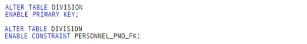 4. 활성화 : 비활성화는 CASCADE로 한꺼번에 할 수 있지만 활성화는 그럴 수 없음. 일일이 작업 해줘야 함