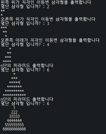 System.out.println("n단의 피라미드 출력합니다");