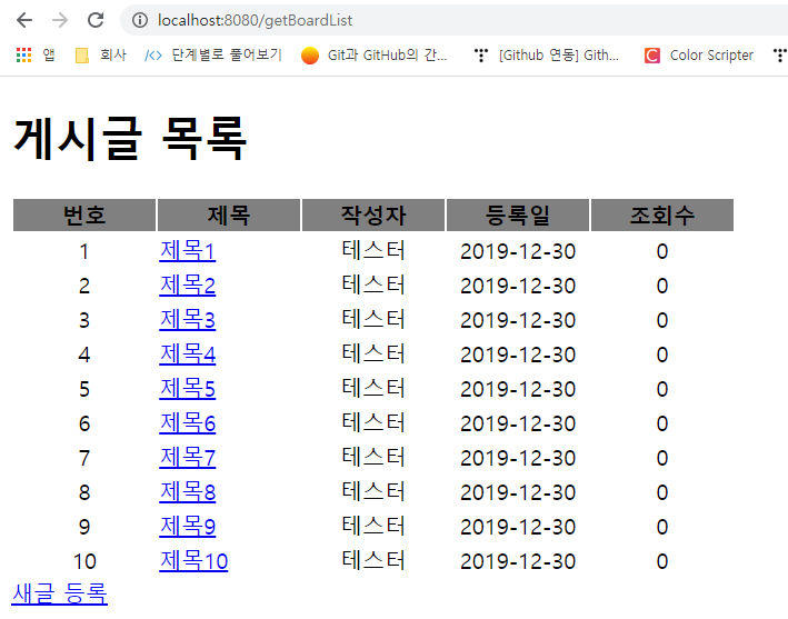 //실제 DB연동 하지 않고 화면에 출력할 게시글 목록을 임시로 생성해서 Model 객체에 등록