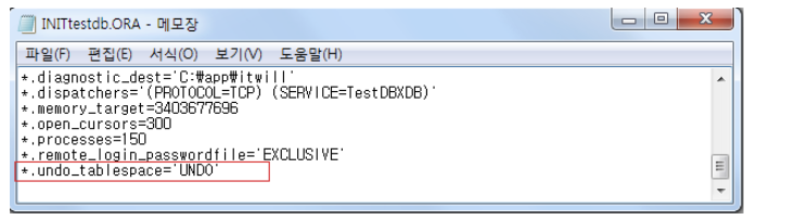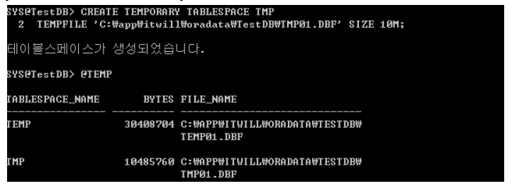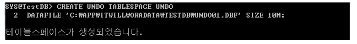 DATAFILE 'C:\APP\ITWILL\ORADATA\TESTDB\UNDO01.DBF' SIZE 10M;