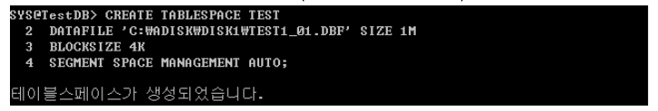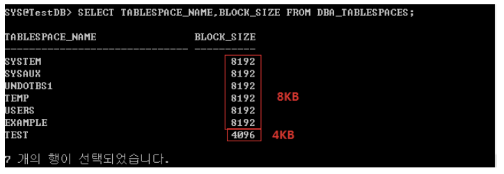 ② 테이블스페이스 생성 시 블록단위를 4KB로 설정(원하는 단위로 바꿀 수 있음)