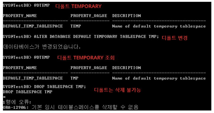 [TEMPORARY TABLESPACE DEFAULT 변경]