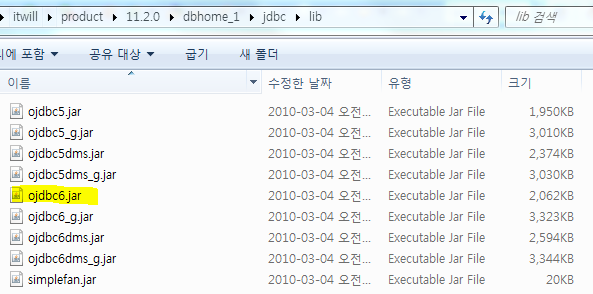 경로 : C:\app\itwill\product\11.2.0\dbhome_1\jdbc\lib