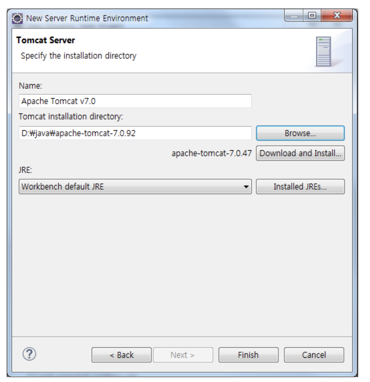 아파치의 톰캣 설치 https://tomcat.apache.org/download-70.cgi